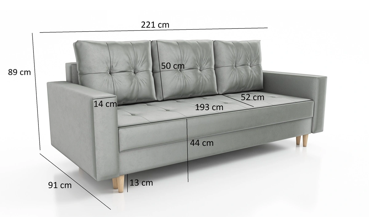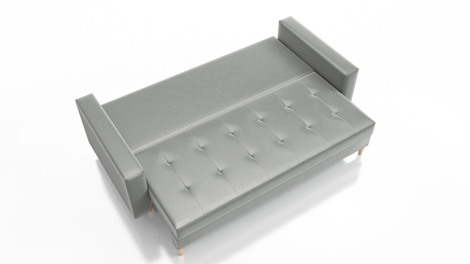 Sofa mit Schlaffunktion die Vaso-Kollektion zeichnet sich aus durch eine Kombination aus traditionellem und skandinavischem Stil. Die Struktur des Sofas ist vollständig mit einem Stoff des Typs plüsch Kronos 29, das höchsten Komfort und Funktionalität bei der täglichen Entspannung im Wohnzimmer, im Gästezimmer oder in jedem anderen Raum, in dem Sie dieses hochmoderne Sofa aufstellen möchten, garantiert. Das stilvolle Gehäuse ist mit einem komfortablen, breiten seiten i lange Beine, die dem gesamten Bauwerk eine optische Leichtigkeit verleihen. Aufgrund seiner geringen Größe ist das Schlafsofa für kleinere Wohnungen geeignet, in denen Platzersparnis an erster Stelle steht.