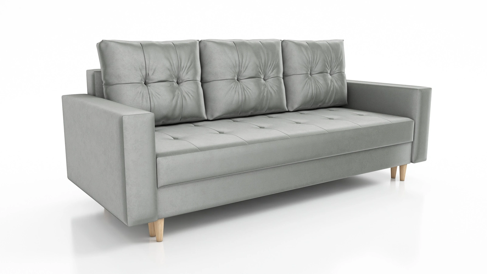 Sofa Vaso hellgrau bequemes Sofa für Wohnzimmer skandinavischen Stil hölzerne hohe Beine Bettzeug Container
