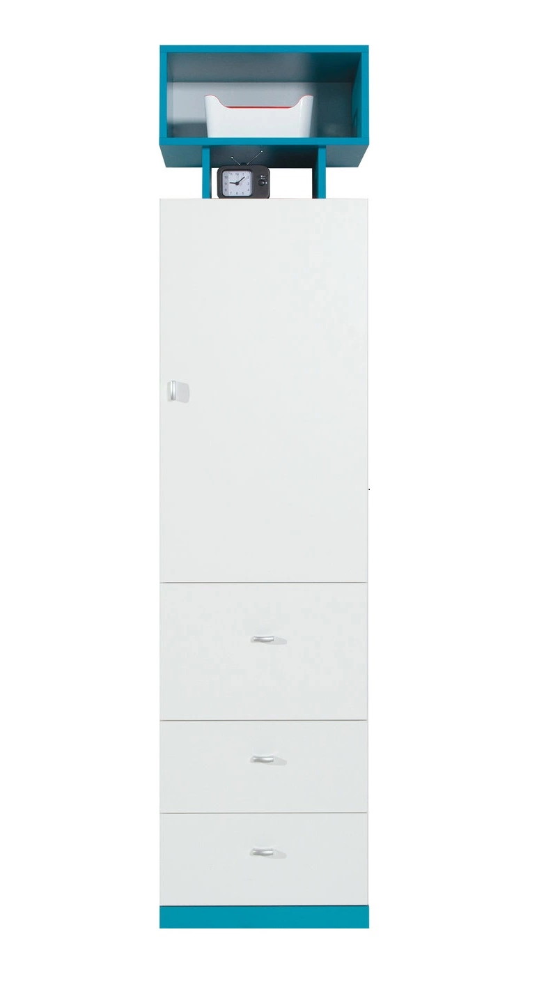 Das Bücherregal Mobi mit Schubladen in Weiß/Türkis ist ein Rezept für eine moderne und funktionelle Einrichtung eines Jugendzimmers.