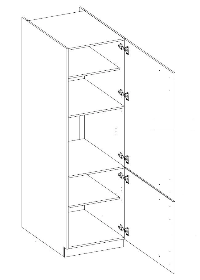 Der Korpus jeder Küchenzeile besteht aus einer hochwertigen laminierter Platte 16 mm dick, mit ABS-Furnier umrandet. Die Fronten sind aus hochfesten mDF-Platte und sind dekorativ gefräst. Die Kanten der Fronten sind zum Schutz vor Feuchtigkeit und versehentlicher Beschädigung mit einem Furnier versehen. Sie haben solide, metallgriffe, die neben ihrer Hauptfunktion den Möbeln einen besonderen Charakter verleihen. Top-Küchenschränke sind mit einem System ausgestattet, das aufhängung an einer universellen Montageschiene. Die Küchencontainer 60 DP-210 2F und 60 DK-210 2F sowie die Küchenschränke 40 D 1F BB, 90x90 DN 2F BB und 60 G-72 1F sind mit einer Universaltür ausgestattet, die rechts oder links montiert werden kann.