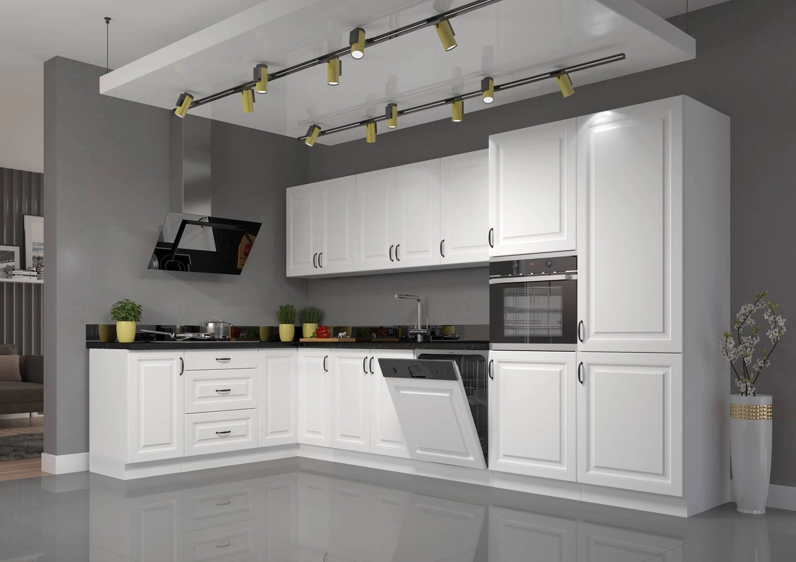 Zestaw mebli kuchennych narożny Snow w kolorze białym