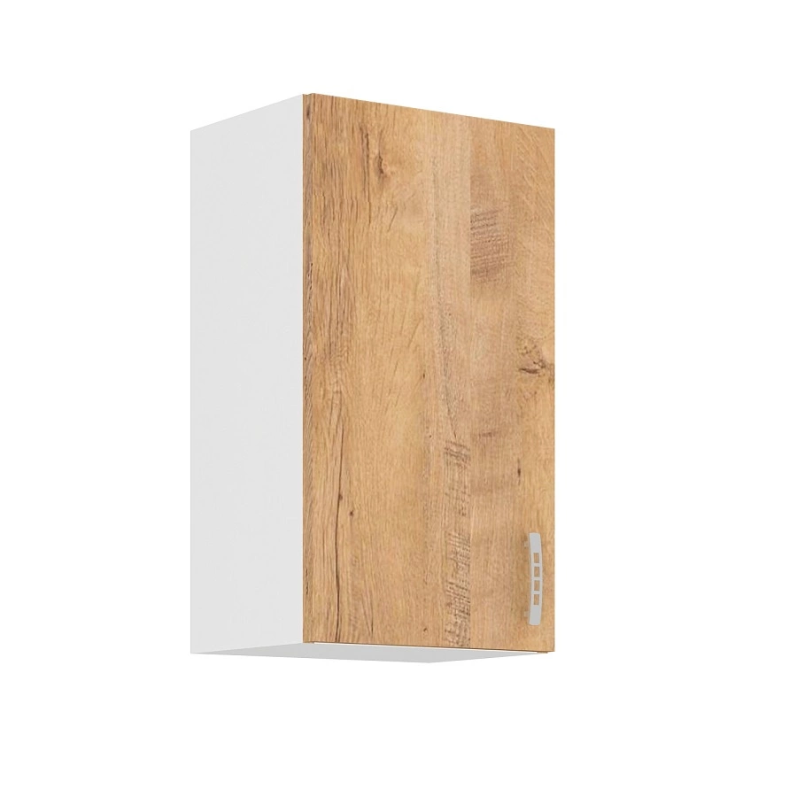 Fronten und Korpus der Küchenschränke sind von hoher Qualität laminierte Platte 16 mm dick. Der Vorteil dieses Kartentyps ist hohe Widerstandsfähigkeit gegen äußere Einflüsse wie Dampf, Hitze, verschüttete Flüssigkeiten. ABS-Furnierkanten erhöhen die Haltbarkeit des Küchenschranks. Eine Kombination aus zeitlosen Farben weiß z lefkas Eiche, verleiht Möbeln Eleganz und einen einzigartigen Stil.