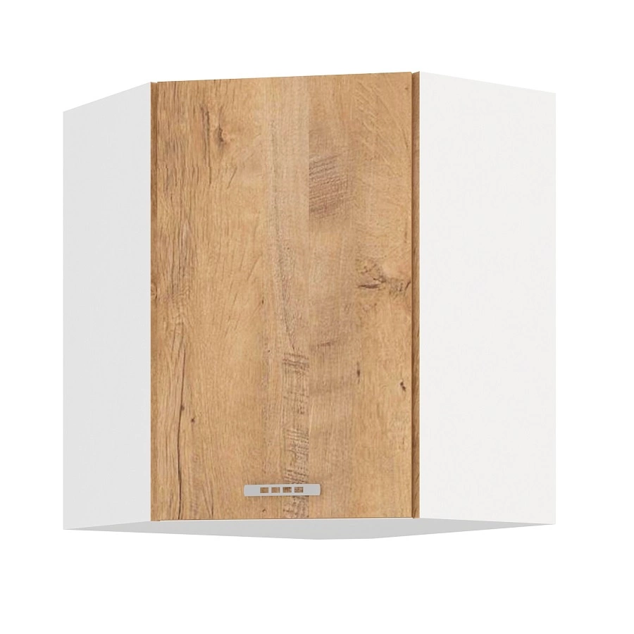 Der Eck-Hängeschrank Lento in Eiche lefkas / weiß gehört zur Kategorie der modularen Küchenmöbel, aus denen sich jedes gewünschte Set zusammenstellen lässt.