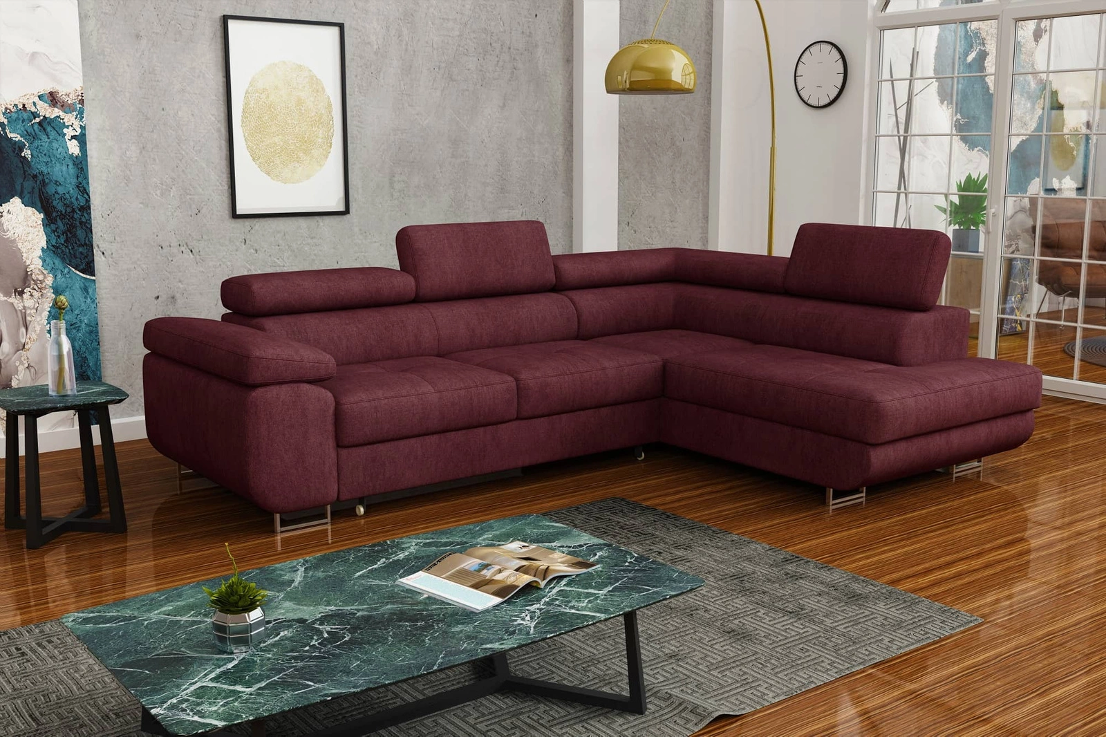 Ecksofa Ganta in Burgunderrot mit verstellbaren Kopfstützen ist ein Rezept für ein modernes Interieur in Ihrem Haus!