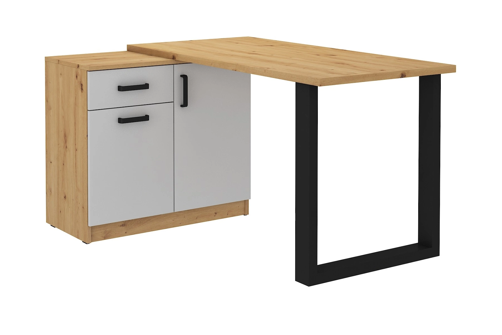 Makana Eckschreibtisch Eiche artisan / hellgrau Kommode und Regale stilvolles und funktionelles Möbelstück mit einer 28mm Platte