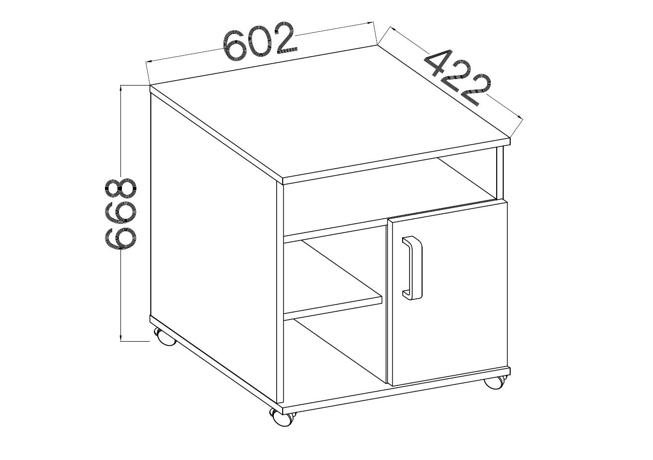 Die Möbel sind konstruiert aus 1 Tür mit eleganten Metallgriffen in Schwarz. Kabinett besteht aus hochwertiger laminierter Karton, die resistent gegen äußere Einflüsse wie Druckstellen, Stöße und unglückliche Kratzer ist. Der Sockel ist mit Rollen ausgestattet, so dass das Verschieben kein Problem mehr darstellt.