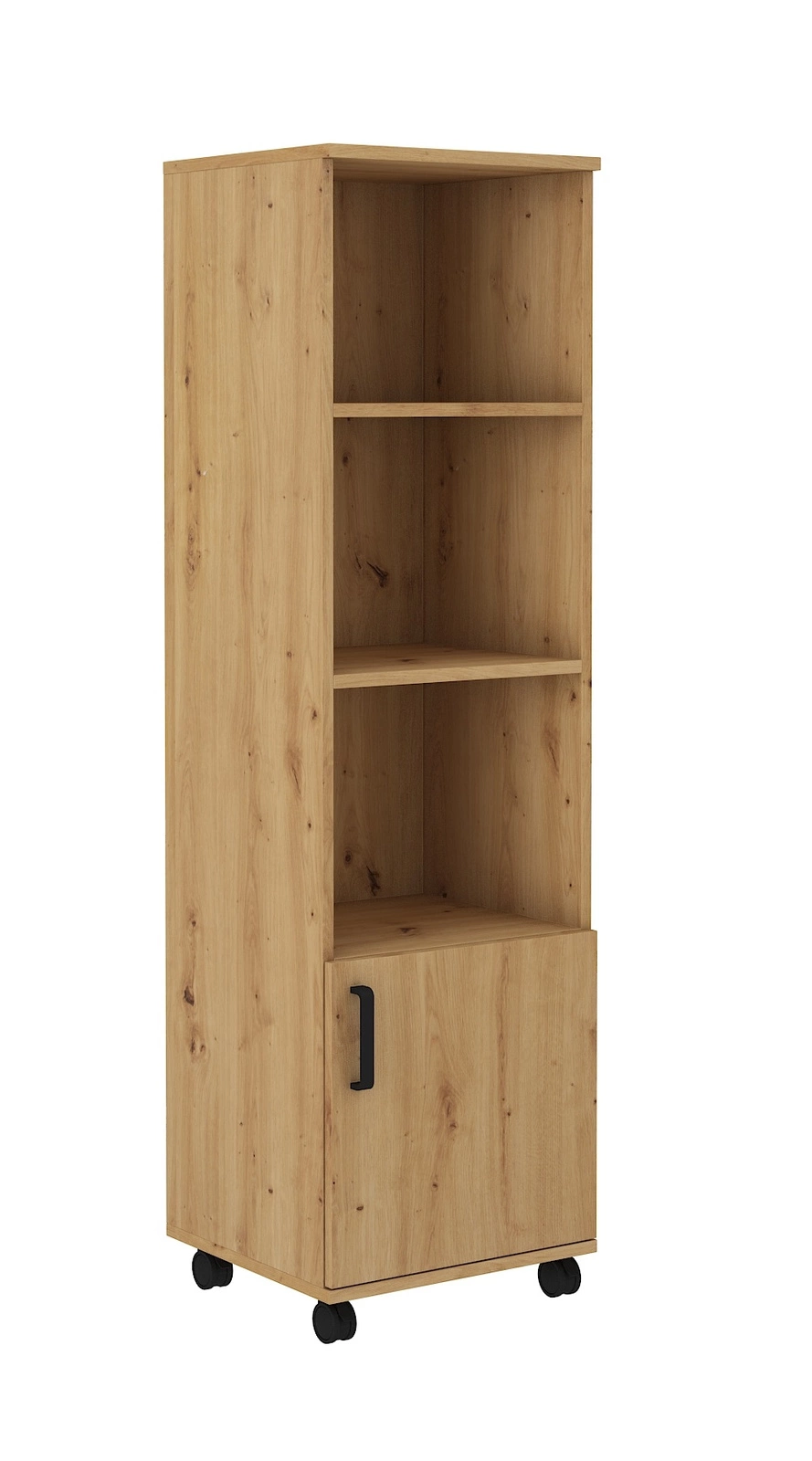Das Bücherregal Makana mit Rollen aus Eiche artisan ist ein Rezept für stilvolle und funktionelle Arbeitsplatzmöbel, aber auch für mehr als das