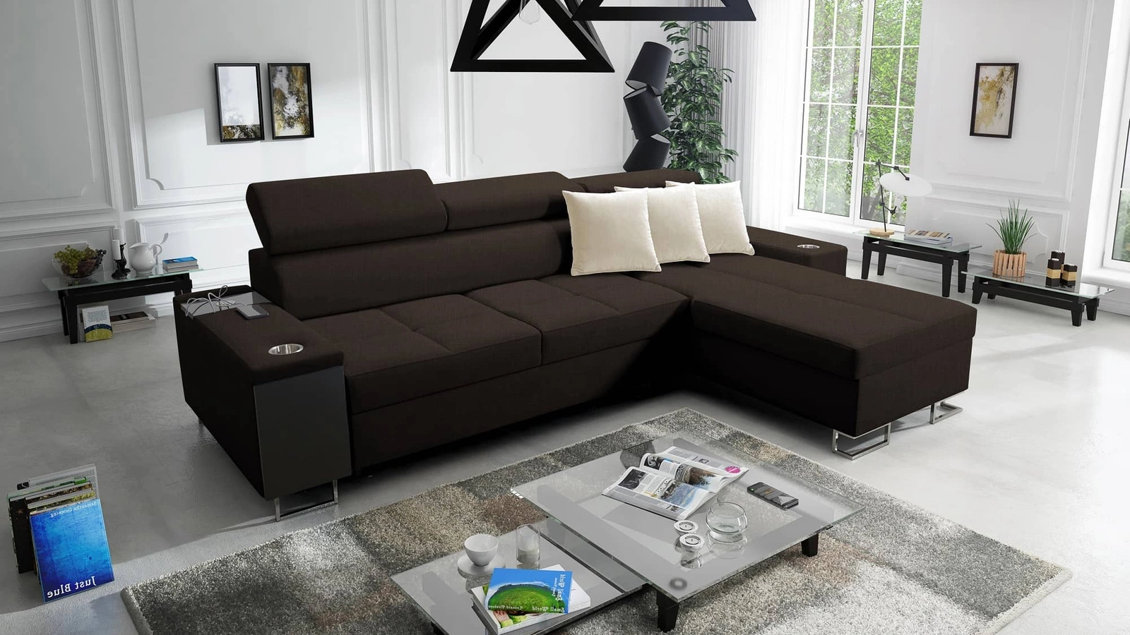 Ecksofa Dafni in Braun mit verstellbaren Kopfstützen ist ein Rezept für ein modernes Interieur in Ihrem Zuhause!