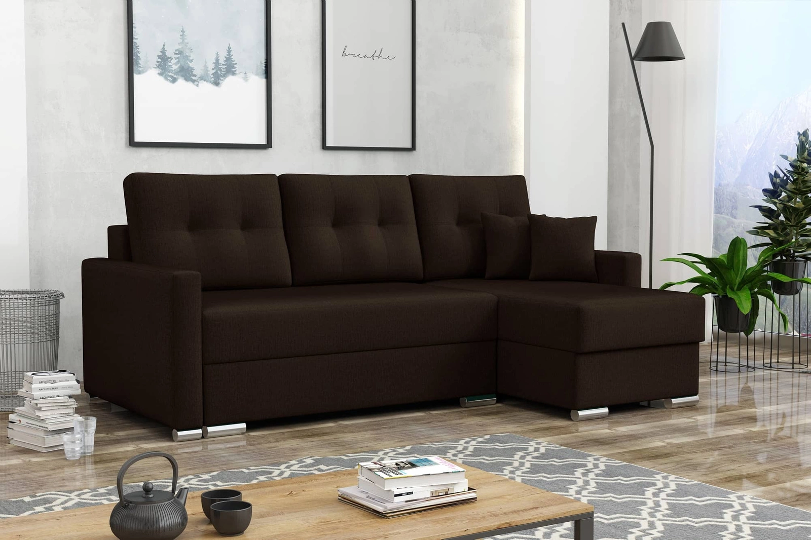 Ecksofa Neron in Braun ist die ideale Lösung für das Wohnzimmer und passt zu jeder Einrichtung.