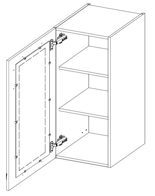 Der Küchenoberschrank wird in den Elementen geliefert, die in einem fünfschichtigen Karton verpackt sind. Alle für die Montage erforderlichen Beschläge, d.h. Schrauben, Bolzen, Dübel, Scharniere, Griffe, Dübel, werden zusammen mit den Küchenschrankkomponenten verpackt.