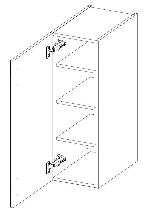 Der Küchenoberschrank wird in den Elementen geliefert, die in einem fünfschichtigen Karton verpackt sind. Alle für die Montage erforderlichen Beschläge, d.h. Schrauben, Bolzen, Dübel, Scharniere, Griffe, Dübel, werden zusammen mit den Küchenschrankkomponenten verpackt.