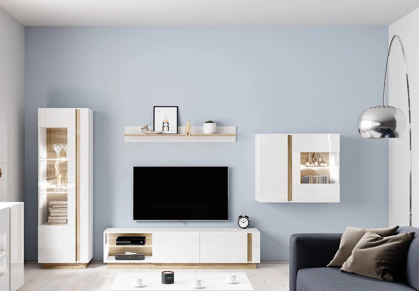 Möbelwand Adria II weiß glänzend / Eiche grandson modernes Design passt perfekt in jede Einrichtung