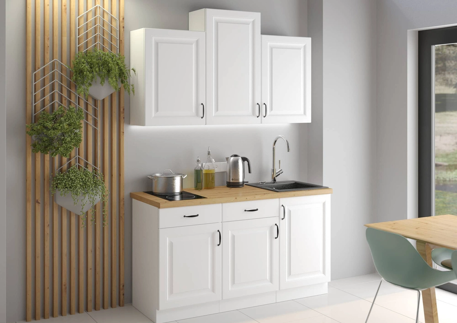 Snow Küchenmöbel-Set 150 cm Schränke sehen in klassischen und modernen skandinavischen Interieurs großartig aus