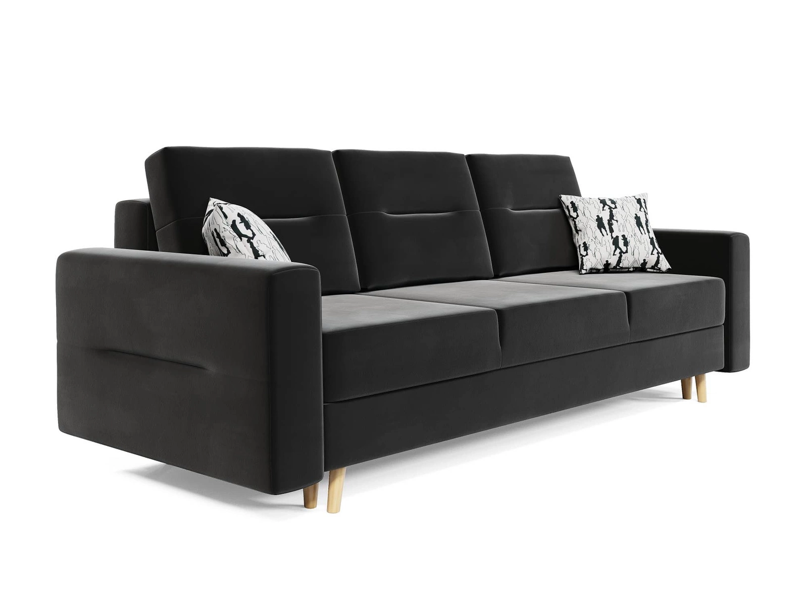 Das schwarze Sofa Bristol mit Schlaffunktion passt perfekt in jede Einrichtung und bietet einen bequemen Schlafplatz im traditionellen und skandinavischen Stil