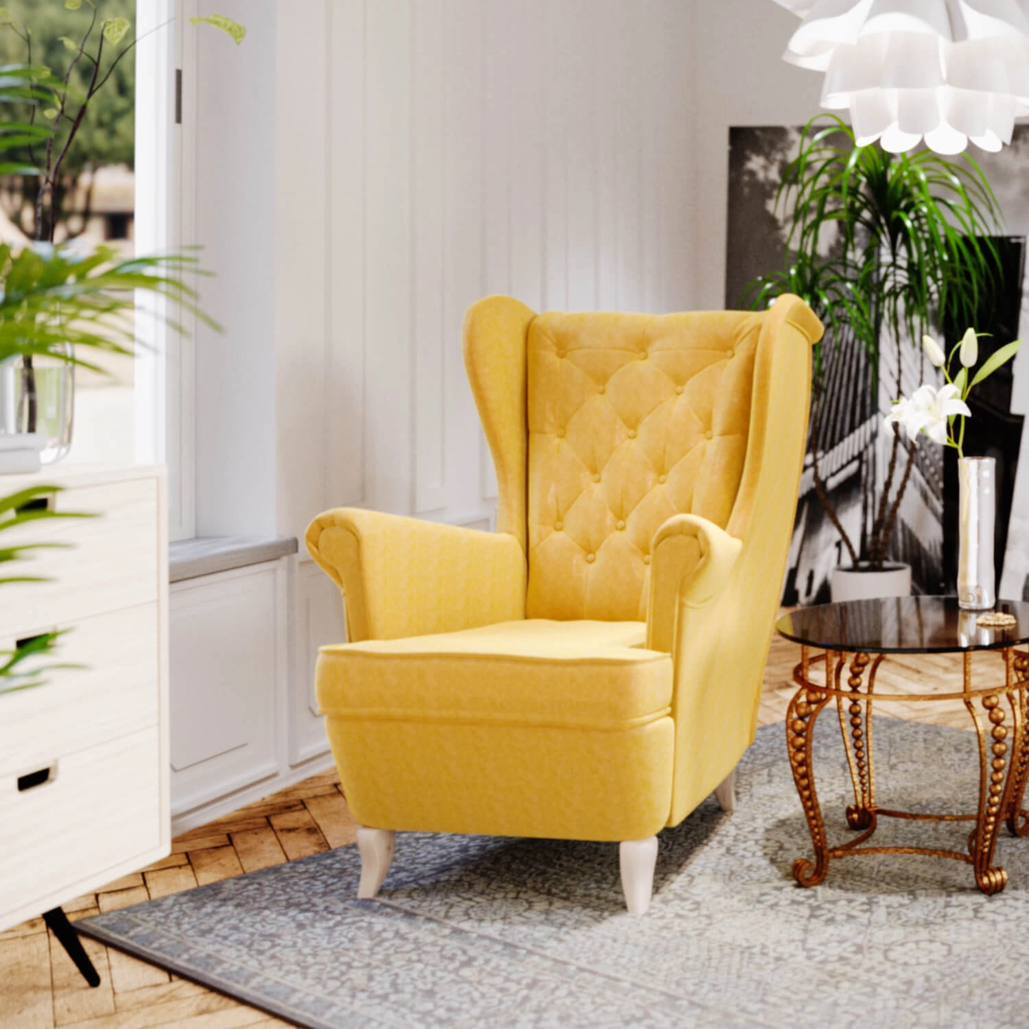 Milano Sessel gelbes zeitloses Möbelstück in moderner Ausführung, ideal für jeden Einrichtungsstil