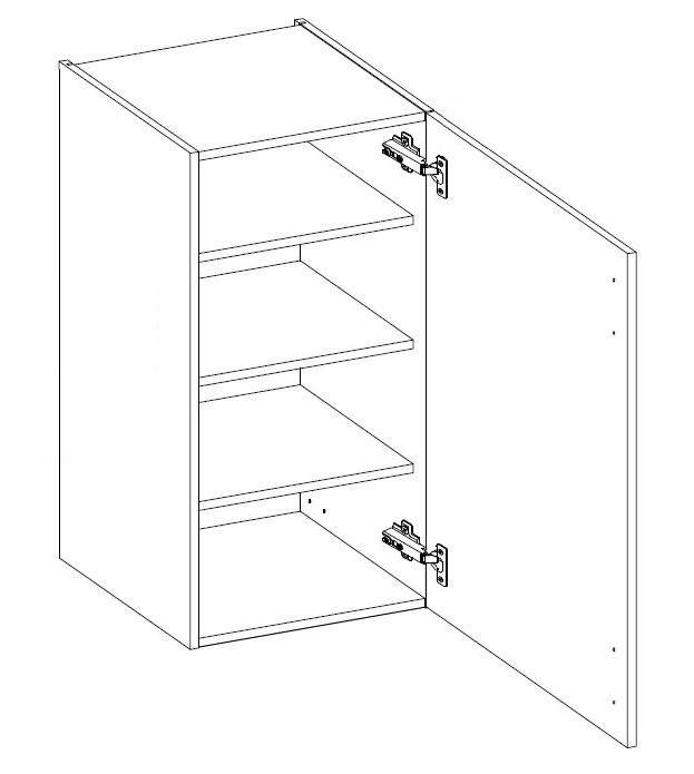 Der Küchenoberschrank wird in den Elementen geliefert, die in einem fünfschichtigen Karton verpackt sind. Alle für die Montage erforderlichen Beschläge, d.h. Schrauben, Bolzen, Dübel, Scharniere, Griffe, Dübel, werden zusammen mit den Küchenschrankkomponenten verpackt.