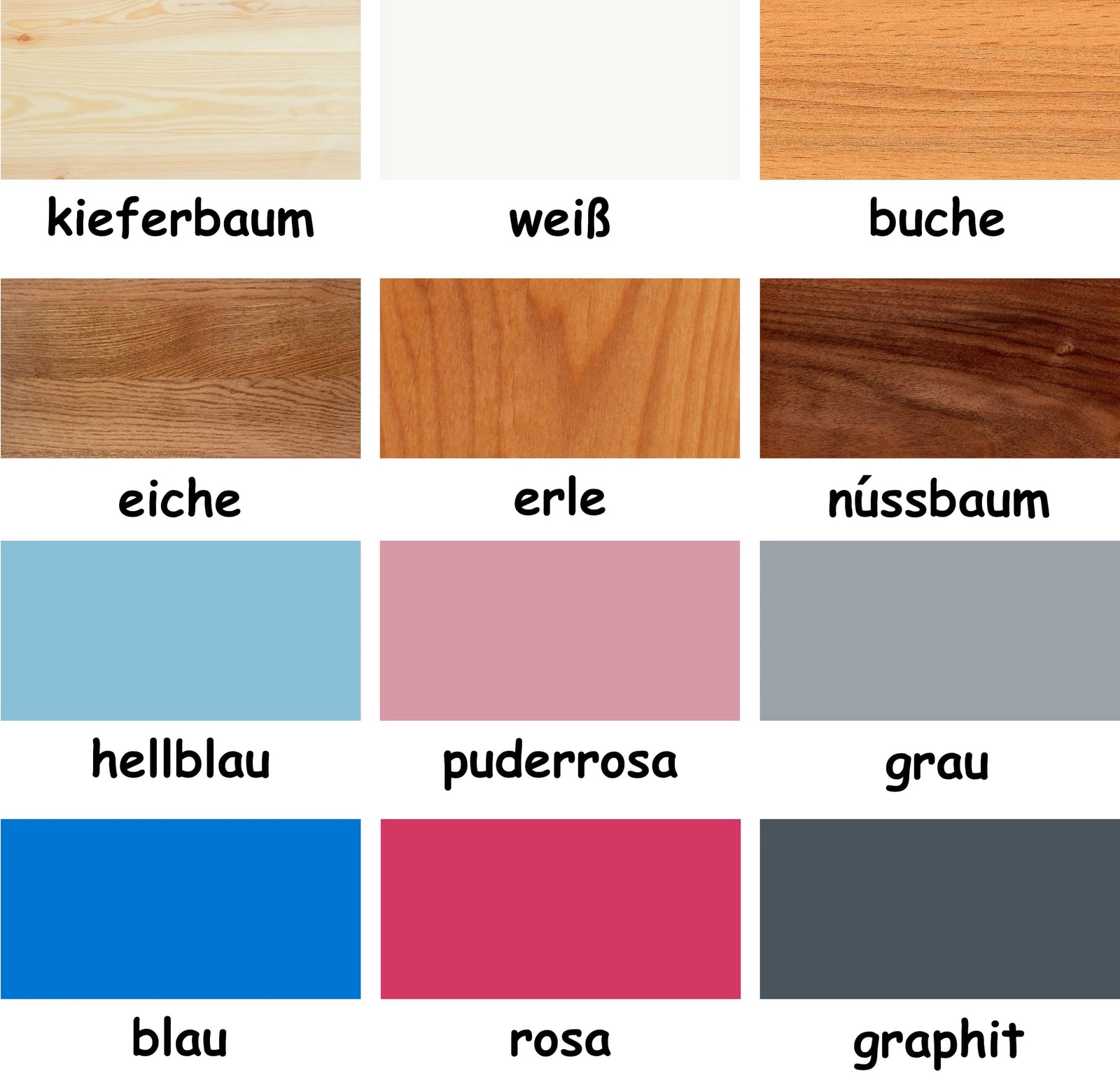Farbvarianten des Kinderbettes Zuzia: