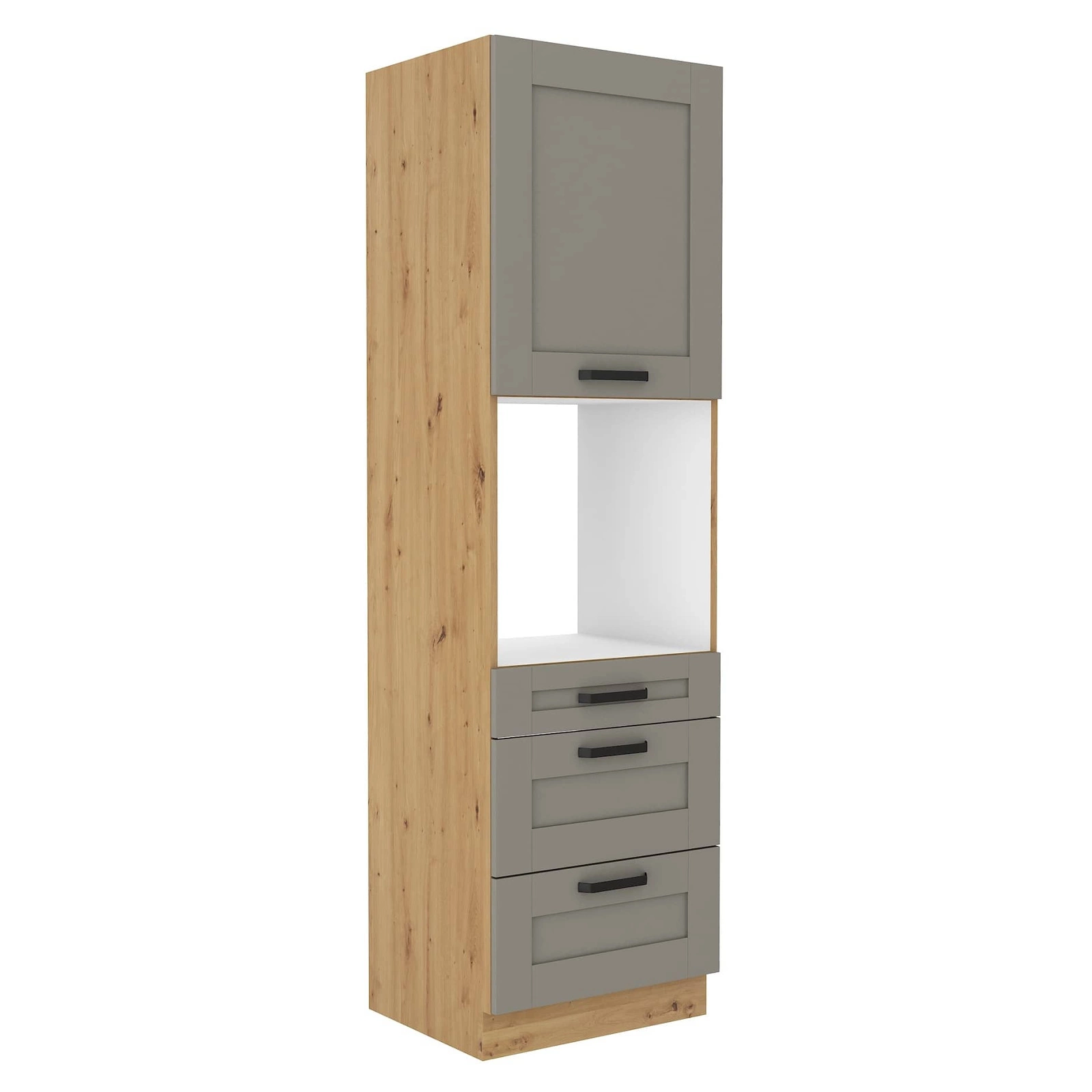 Das Linosa 60 cm Backofengestell in grau-beige / Eiche artisan gehört zur Kategorie der modularen Küchenmöbel, aus denen sich jedes gewünschte Set zusammenstellen lässt.