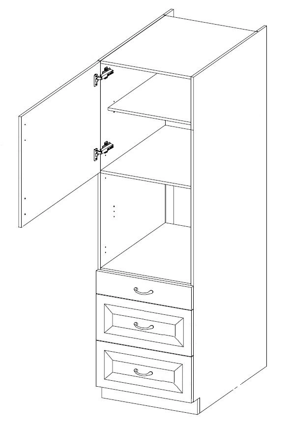 Der Backofen-Einbau-Küchenschrank wird in den Elementen geliefert, die in einem fünfschichtigen Karton verpackt sind. Zusammen mit den Küchenschrankteilen werden alle für die Montage erforderlichen Beschläge verpackt, d.h. Schrauben, Bolzen, Dübel, Scharniere, Schubladen, Griffe, Dübel.