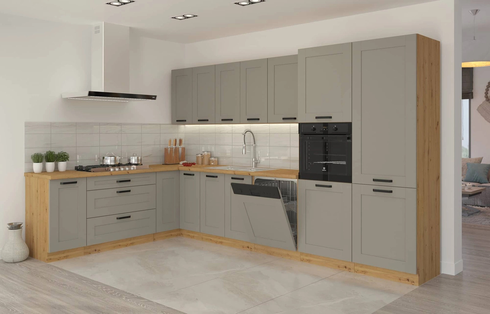 Szafki kuchenne modułowe Linosa w kolorze szary beż / dąb artisan
