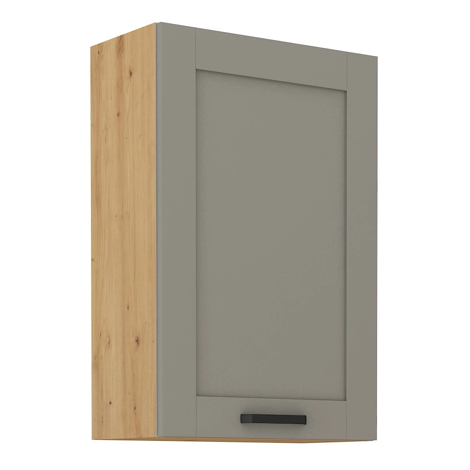 Der wandhängende Küchenschrank Linosa in grau-beige / Eiche artisan gehört zur Kategorie der modularen Küchenmöbel, aus denen jedes gewünschte Set zusammengestellt werden kann.