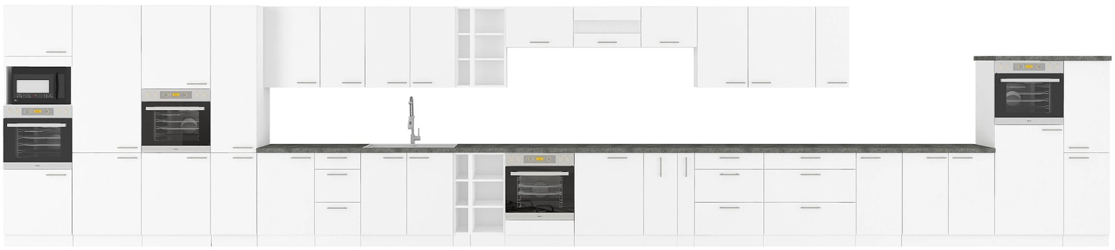 Die Vorderkanten sind durch ABS-Furnier geschützt, das zwei Funktionen hat. Sie ist schutz vor Feuchtigkeit und schützt vor versehentlicher Beschädigung. Farbe des Sockels weiß ist aus hochwertigem 16 mm starkem laminiertem Karton gefertigt. Der Vorteil dieses Kartontyps ist seine hohe Widerstandsfähigkeit gegen äußere Einflüsse wie Dampf, Hitze und verschüttete Flüssigkeiten. ABS-Furnierkanten erhöhen die Stabilität des Gehäuses.