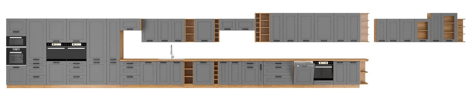 Szafki kuchenne modułowe Asti w kolorze szary popiel / dąb artisan