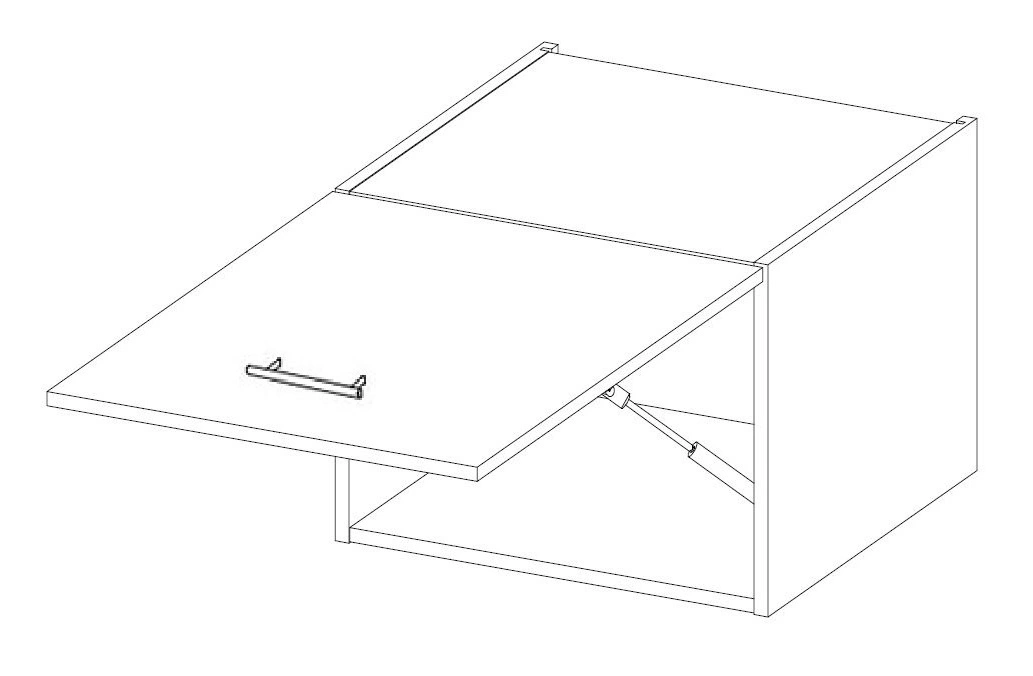 Der weiße Korpus des Küchenschranks über der Dunstabzugshaube ist aus hochwertigem laminierte Platte 16 mm dick. Der Vorteil dieser Art von Platten ist hohe Widerstandsfähigkeit gegen äußere Einflüsse wie Wasserdampf, Hitze und verschüttete Flüssigkeiten. Die mit ABS-Furnier geschützte Kante des Küchenschranks erhöht die Haltbarkeit des Küchenschranks.