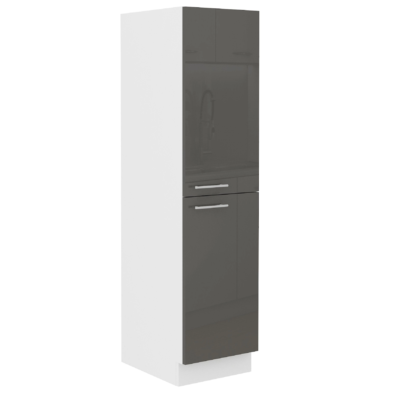 Der weiße Küchenschrankkorpus ist von hoher Qualität laminierte Platte 16 mm dick. Der Vorteil dieser Art von Platten ist hohe Widerstandsfähigkeit gegen äußere Einflüsse wie Wasserdampf, Hitze und verschüttete Flüssigkeiten. ABS-Furnierkanten erhöhen die Haltbarkeit des Küchenschranks.