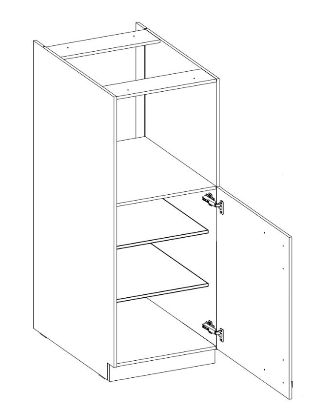 Die Einlegeböden des Küchencontainers sind höhenverstellbar und bieten Platz für hohe Gegenstände. Die Tür ist universell einsetzbar und kann an den rechts oder auf der links website. Zur Standardausstattung der Küchenschränke gehören scharniere mit Absenkautomatik, die die komfort i sicherheit verwendung von Möbeln.