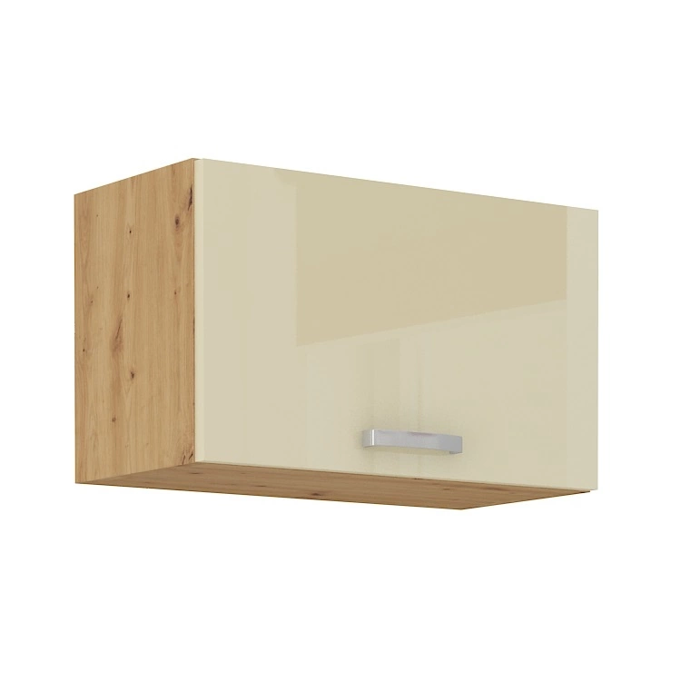 Küchenoberschrankfronten in der Farbe creme sind hergestellt aus mDF und mit Folie abgedeckt in glänzend. Die Kanten von Küchenschrankfronten werden durch ein Furnier geschützt, das zwei Funktionen hat. Sie ist sicherheit gegen Feuchtigkeit und schützt gegen zufällige Beschädigung.