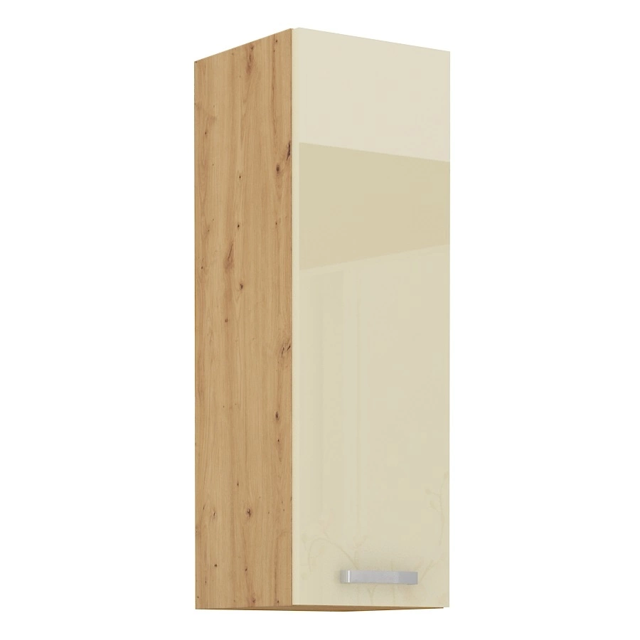 Küchenoberschrankfronten in der Farbe creme sind hergestellt aus mDF und mit Folie abgedeckt in glänzend. Die Kanten von Küchenschrankfronten werden durch ein Furnier geschützt, das zwei Funktionen hat. Sie ist sicherheit gegen Feuchtigkeit und schützt gegen zufällige Beschädigung.