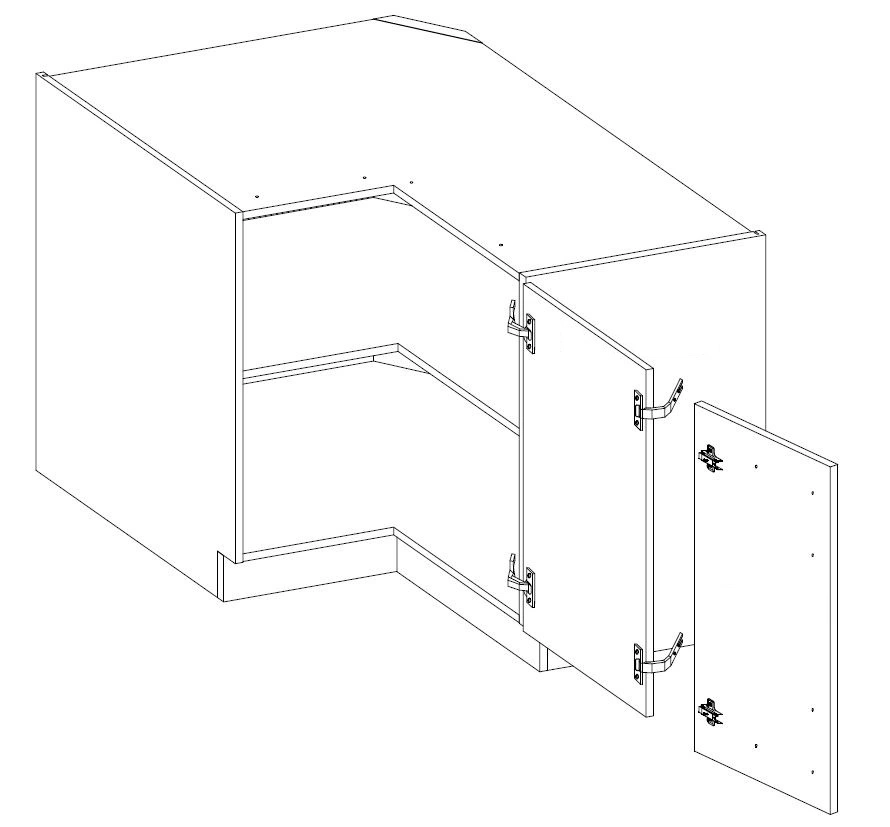 Der Eckküchenschrank wird in Stücken geliefert, die in einem fünfschichtigen Karton verpackt sind. Alle für die Montage erforderlichen Beschläge, d.h. Schrauben, Bolzen, Dübel, Scharniere, Griffe, Dübel, werden zusammen mit den Küchenschrankkomponenten verpackt.