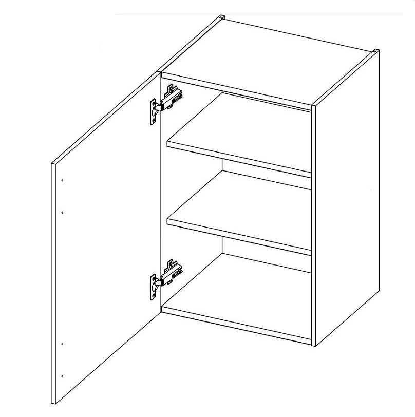 Der Küchenschrank wird in den Elementen geliefert, die in einem fünfschichtigen Karton verpackt sind. Alle für die Montage erforderlichen Beschläge, d. h. Schrauben, Bolzen, Dübel, Scharniere, Griffe, Dübel usw., sind zusammen mit den Schrankteilen verpackt. Der Schrank ist ausgestattet mit einem System von aufhängung an einer universellen Montageschiene, inklusive verstellbarer Pendel.