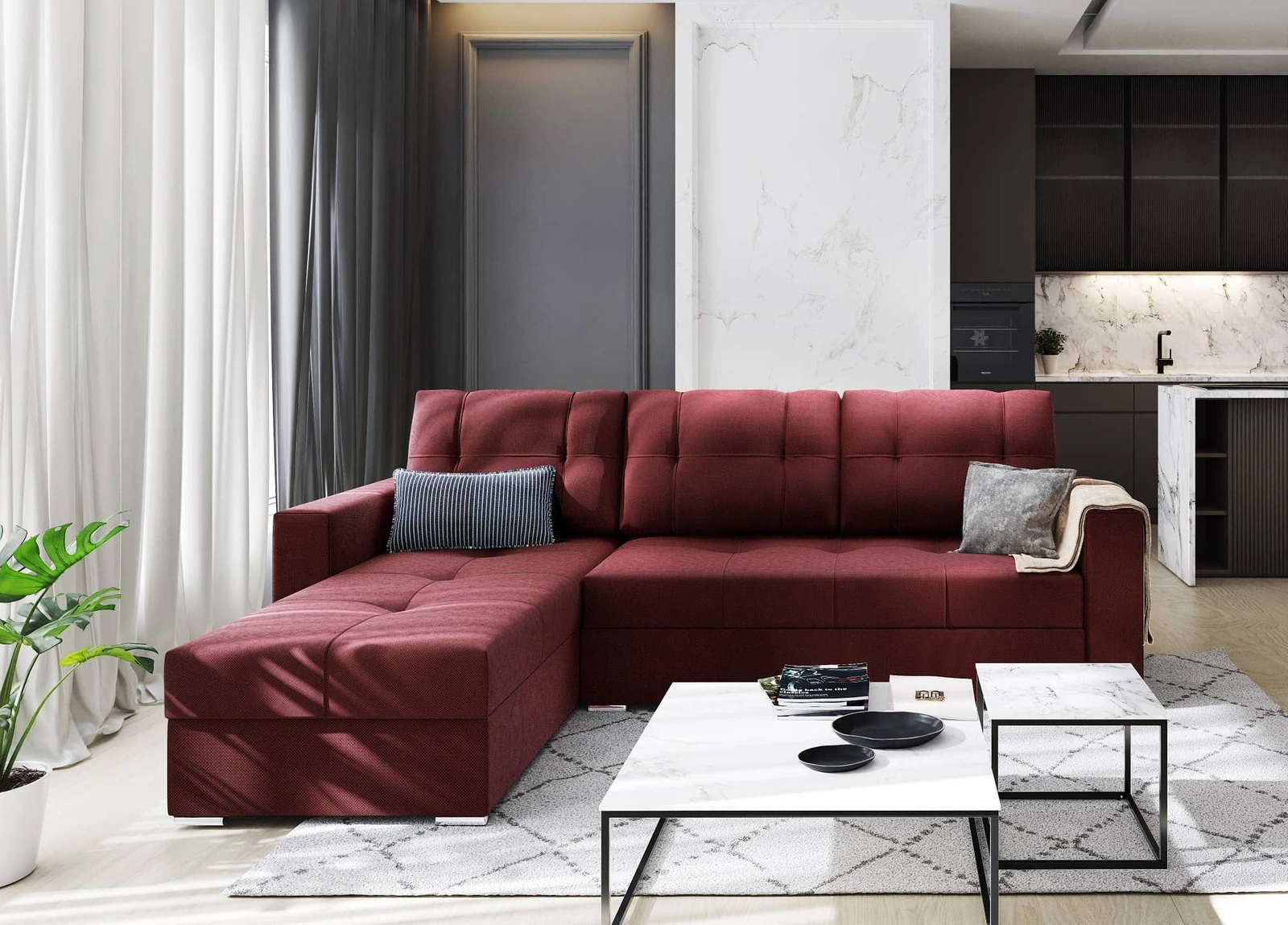 Ecksofa Aldo in Burgunderrot ist die perfekte Lösung für das Wohnzimmer und passt zu jeder Einrichtung.