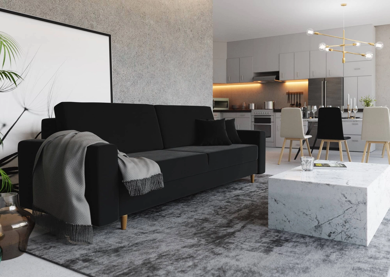 Sofa mit Schlaffunktion Ines schwarz im traditionellen und skandinavischen Stil passt perfekt in jede Einrichtung und verleiht Finesse und Charakter