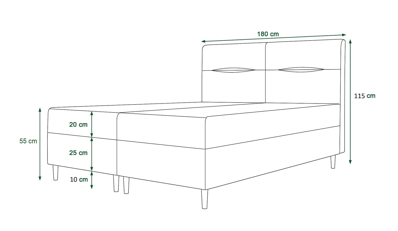 Bett aus Stoff typ velvet Monolith 97 garantiert ein Höchstmaß an Komfort und Funktionalität für die tägliche Entspannung im Schlafzimmer. Der Stoff hat eine Beschichtung aus hydrophob, was eine begrenzte Flüssigkeitsaufnahme gewährleistet. Die interessante Struktur des Gewebes verleiht einen einzigartigen Charakter. Dank der Eigenschaften des verwendeten Stoffes behält das kontinentale Bett lange Zeit sein ursprüngliches Aussehen. Das Design des Bettes sorgt für große Stabilität und Komfort bei der Benutzung. Der Rahmen des kontinentalen Bettes ist aus Holz und einer Möbelplatte gefertigt. Licht nähen am Kopfteil sind ein Blickfang und verleihen dem Bett einen besonderen Charakter. Das Bett ist ausgestattet mit holzbeine.