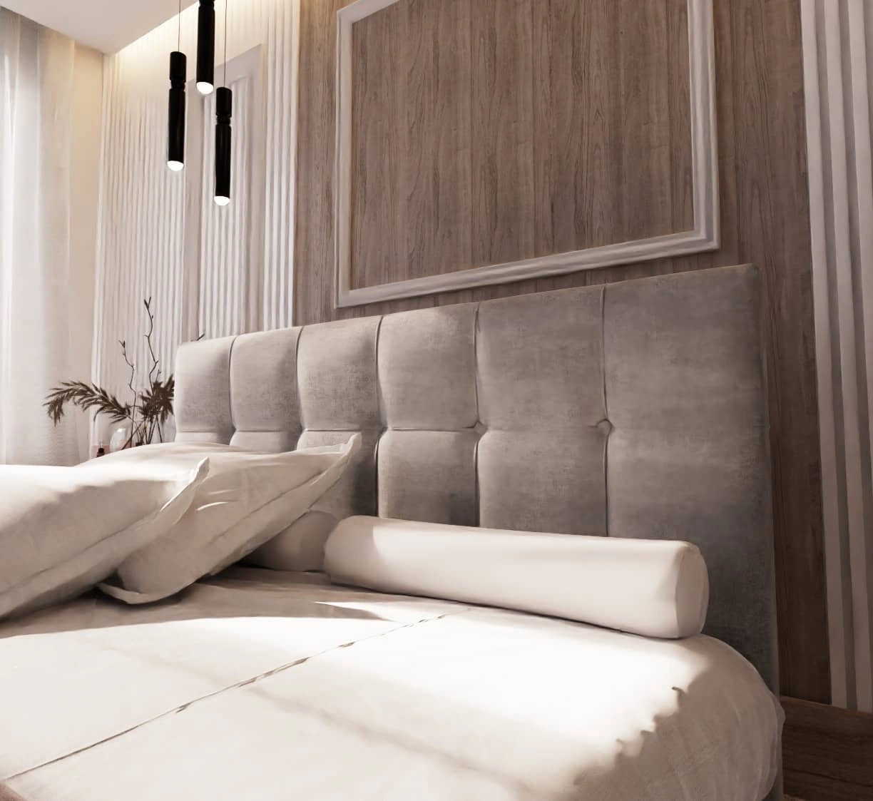 - Das kontinentale Bett Harmony ist eine ausgezeichnete Wahl für modern, skandinavisch und klassisch eingerichtete Schlafzimmer. Das Design des Bettes sorgt für große Stabilität und Komfort bei der Benutzung. Die mit Zierknöpfen versehene Kopfstütze ist ein
