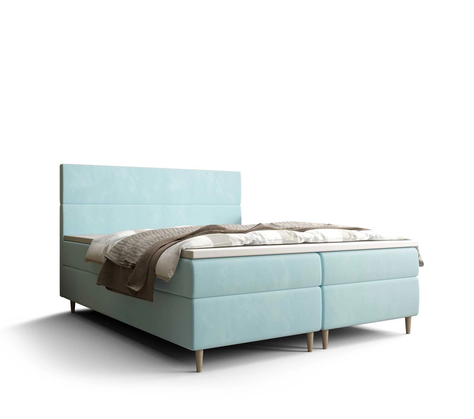 Boxspringbett Bing 160x200 Hellblau im modernen skandinavischen Stil mit markantem Kopfteil