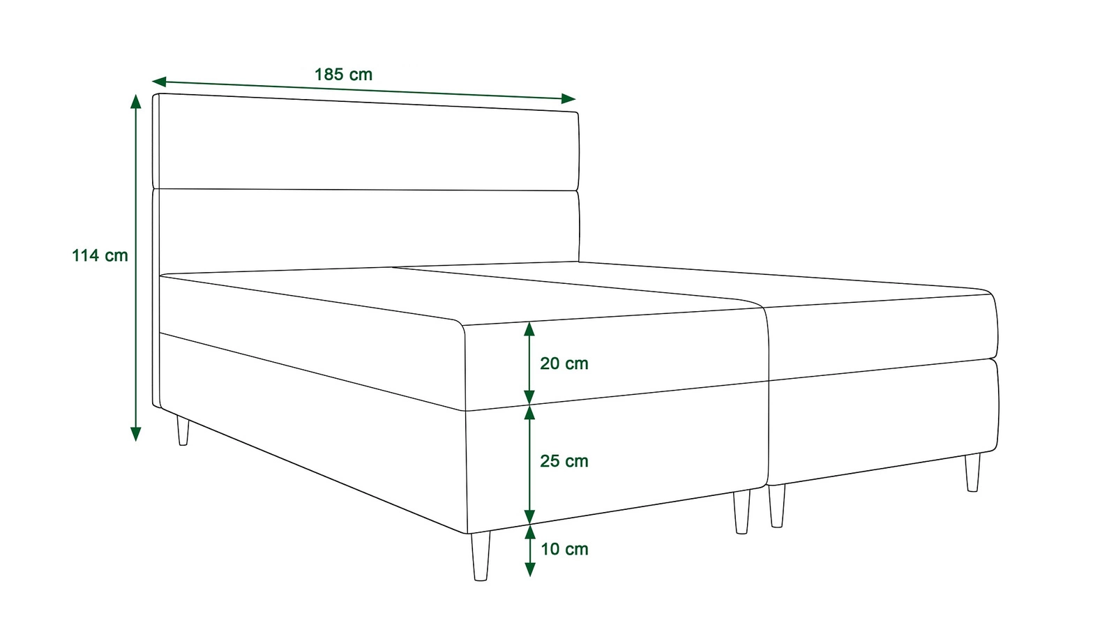 Bett aus Stoff Typ plüsch Itaka 13 garantiert ein Höchstmaß an Komfort und Funktionalität für die tägliche Entspannung im Schlafzimmer. Der Stoff wird hergestellt aus leichte Reinigung und stellt aus begrenzung der Flüssigkeitsaufnahme. Dank der Eigenschaften des verwendeten Stoffes behält das kontinentale Bett lange Zeit sein ursprüngliches Aussehen. Das Design des Bettes sorgt für große Stabilität und Komfort bei der Benutzung. Der Rahmen des kontinentalen Bettes ist aus Holz und Möbelplatten gefertigt. Stilvoll nähen am Kopfteil zieht die Blicke auf sich und verleiht dem Bett einen besonderen Charakter. Die Bettfüße sind aus Buchenholz gefertigt.