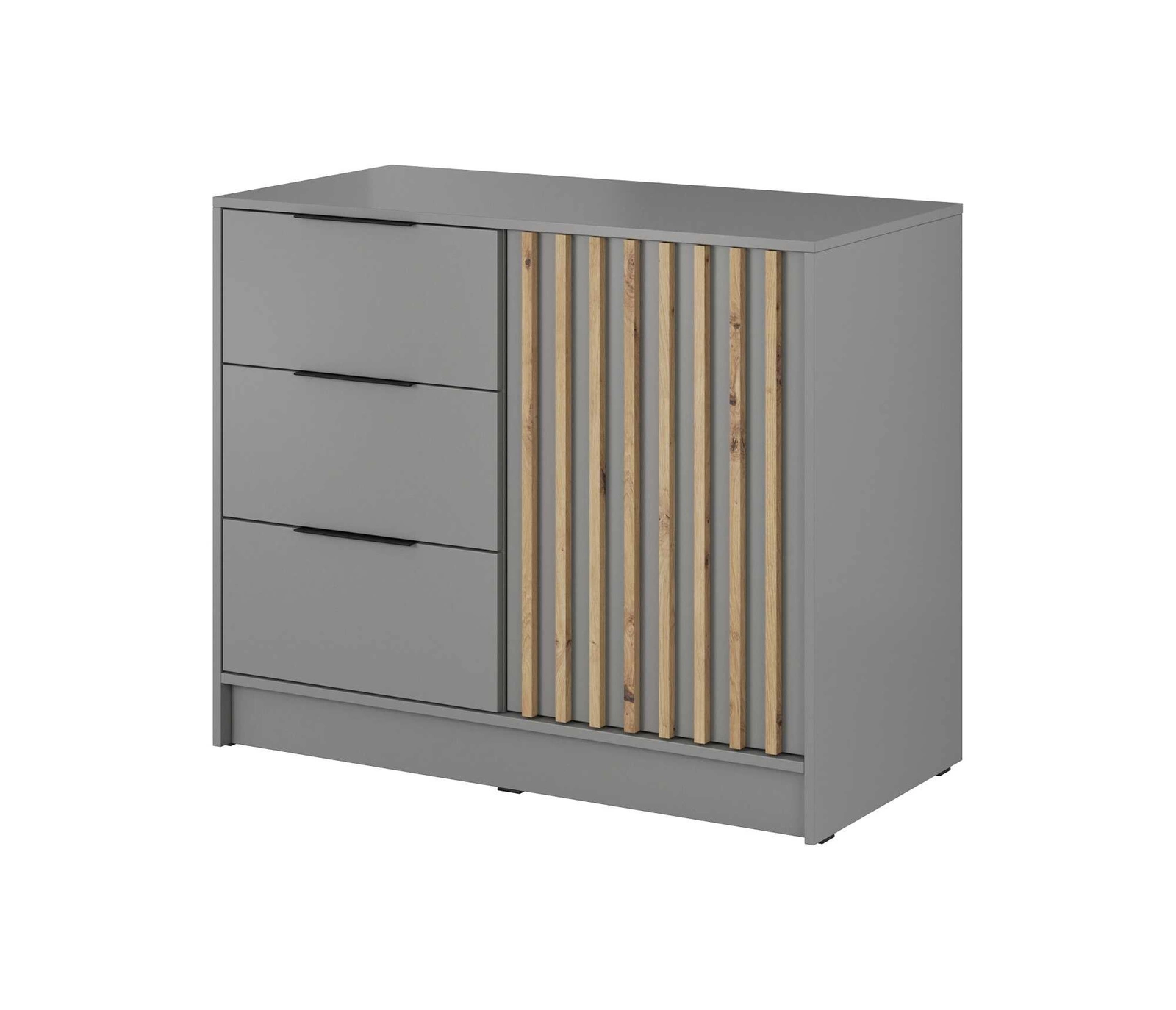 Kommode mit Schubladen Aspen 105 cm Grau / Eiche Artisan Lamellen modernes Design Schranktüren der Kommode mit dekorativen Lamellen