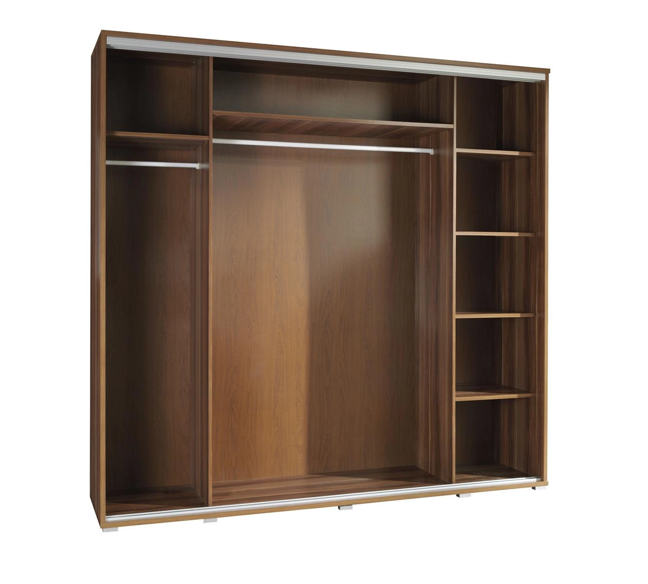 Der Kleiderschrank ist in einen Raum mit Regalen und einen Raum mit einer Stange zum Aufhängen von Kleidung unterteilt. Korpus des Kabinetts wurde aus hochwertiger laminierter Karton mit einer Dicke von 22mm. Laminierte Pappe ist gekennzeichnet durch hohe Widerstandsfähigkeit gegen äußere Einflüsse wie Prellungen, Stöße und unglückliche Kratzer.