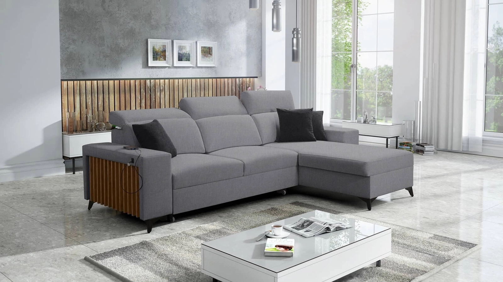 Narożnik Kelly z funkcją spania codziennego w kolorze szarym