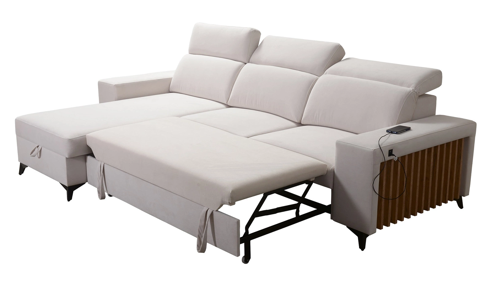 Weitere Merkmale dieses Möbelstücks, die von allen Nutzern geschätzt werden, sind ein Bettzeugbehälter, eine Schlaffunktion, eine USB-Buchse an der Seite der Ecke zum Aufladen des Telefons und anderer Multimedia-Geräte.