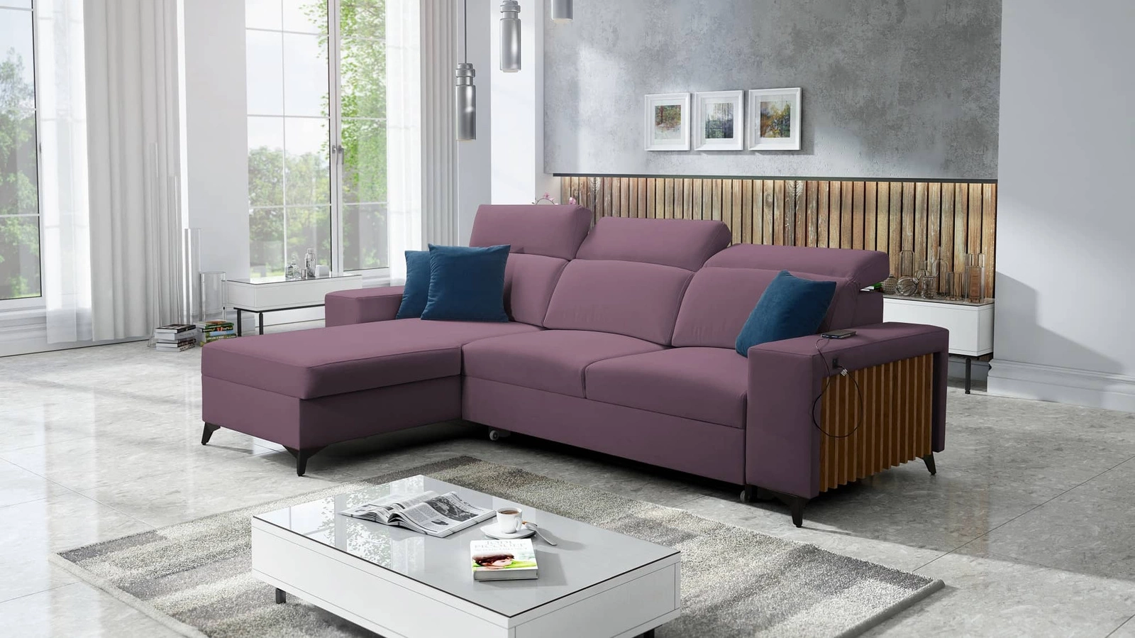 Narożnik Kelly z funkcją spania codziennego w kolorze wrzosowym
