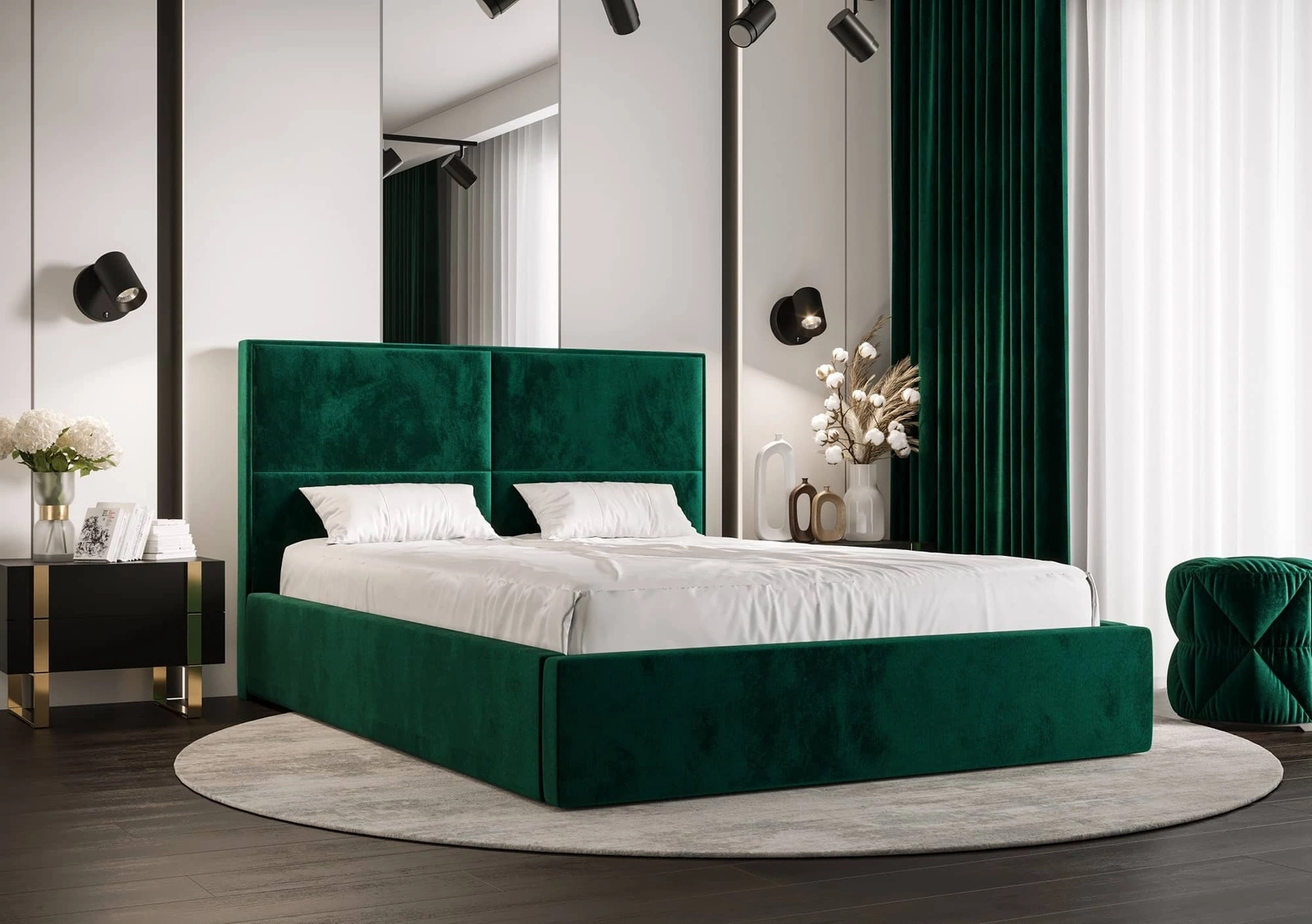 Das Polsterbett Afrodyta 140x200 in Flaschengrün ist eine ideale Lösung für modern, skandinavisch und klassisch eingerichtete Schlafzimmer.