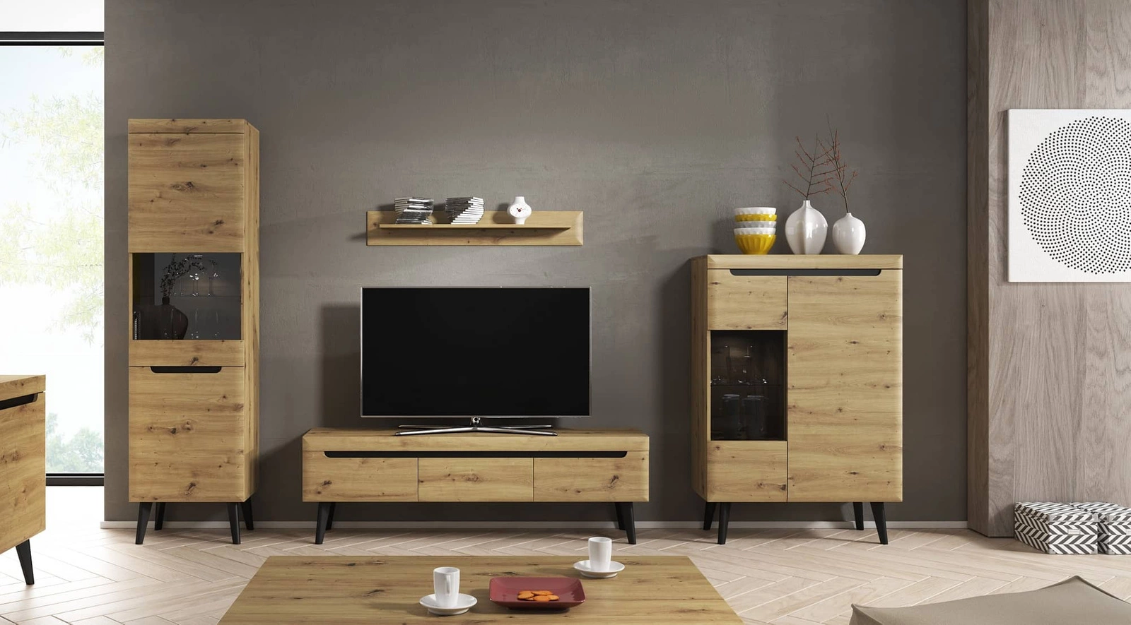 Die Atka Wohnwand aus Eiche artisan ist ein außergewöhnliches Möbelstück, das passt perfekt in jedes Interieur!