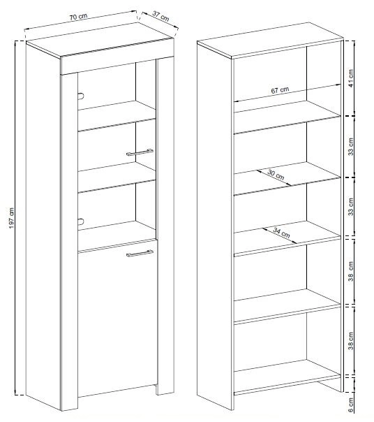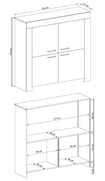 Das Neba-Möbelset ist eine moderne und stilvolle Lösung für das Wohnzimmer. Die Sockelleiste, die den Möbelkorpus umgibt, ist ein ungewöhnlicher Abschluss der Neba-Kollektion. Die Einlegeböden an den Seiten der Kommode und diedie freiliegenden Glasfronten der Vitrine erlauben es, die Accessoires, die die Dekoration des Wohnzimmers darstellen, zu zeigen. Stilvoll ddie Fronten sind mit Griffen in der Farbe von silber.