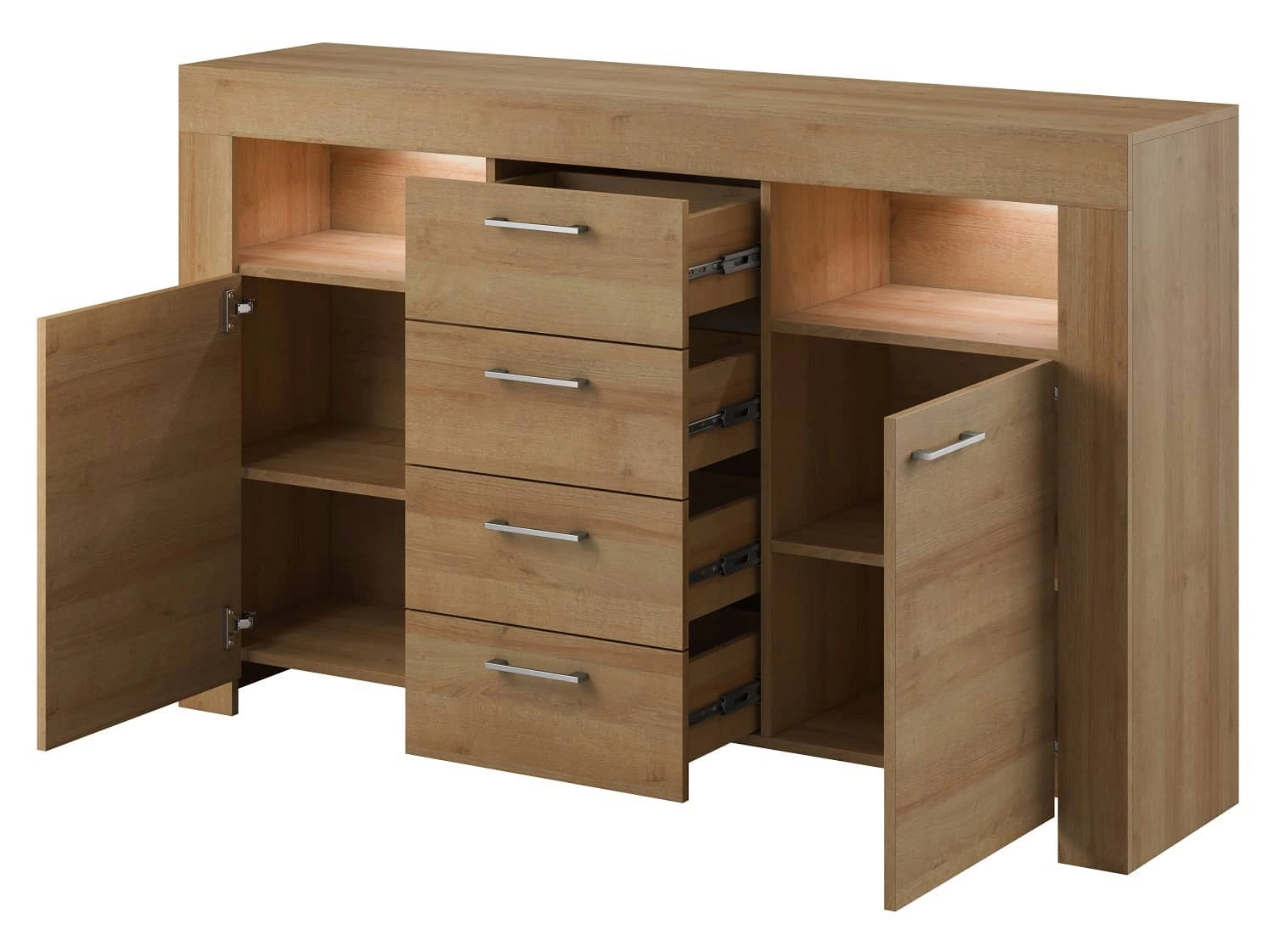 Möbelset Neba Eiche riviera moderne Schrankwand ideal für Wohnzimmer und Sitzungssaal in Originalfarben