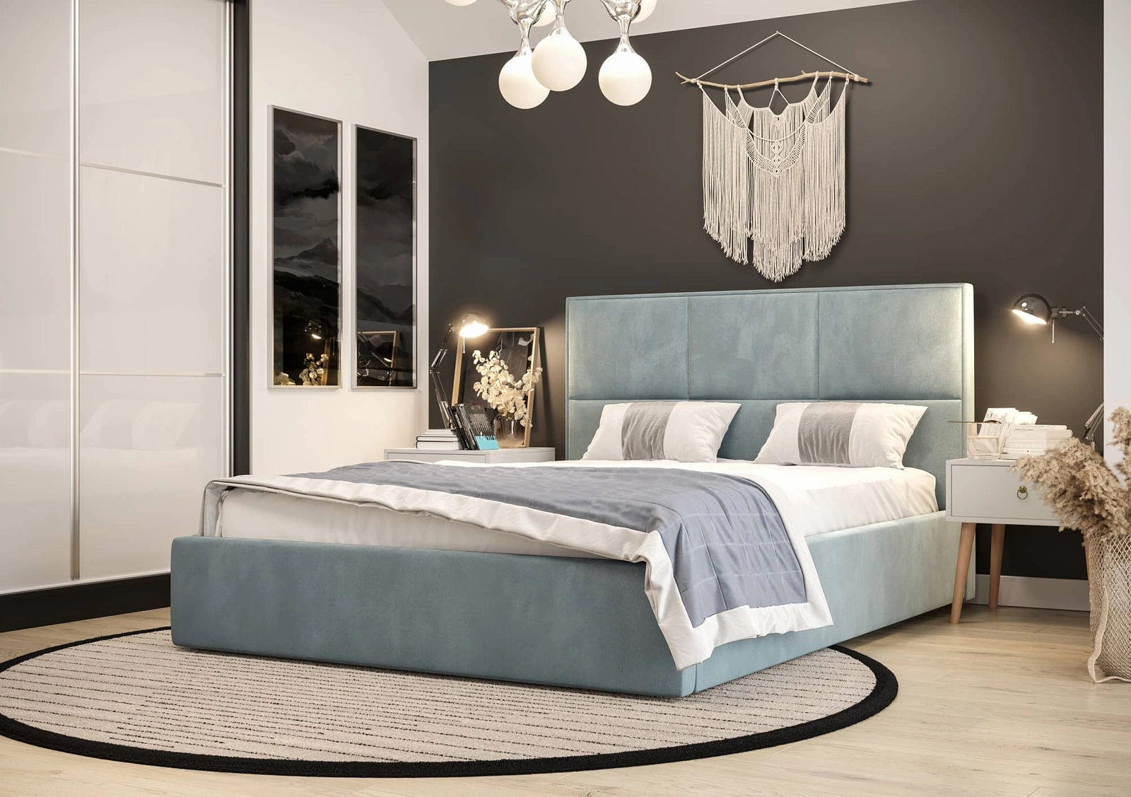 Das Polsterbett Hestia 140x200 in Türkis ist eine ideale Lösung für modern, skandinavisch und klassisch eingerichtete Schlafzimmer.